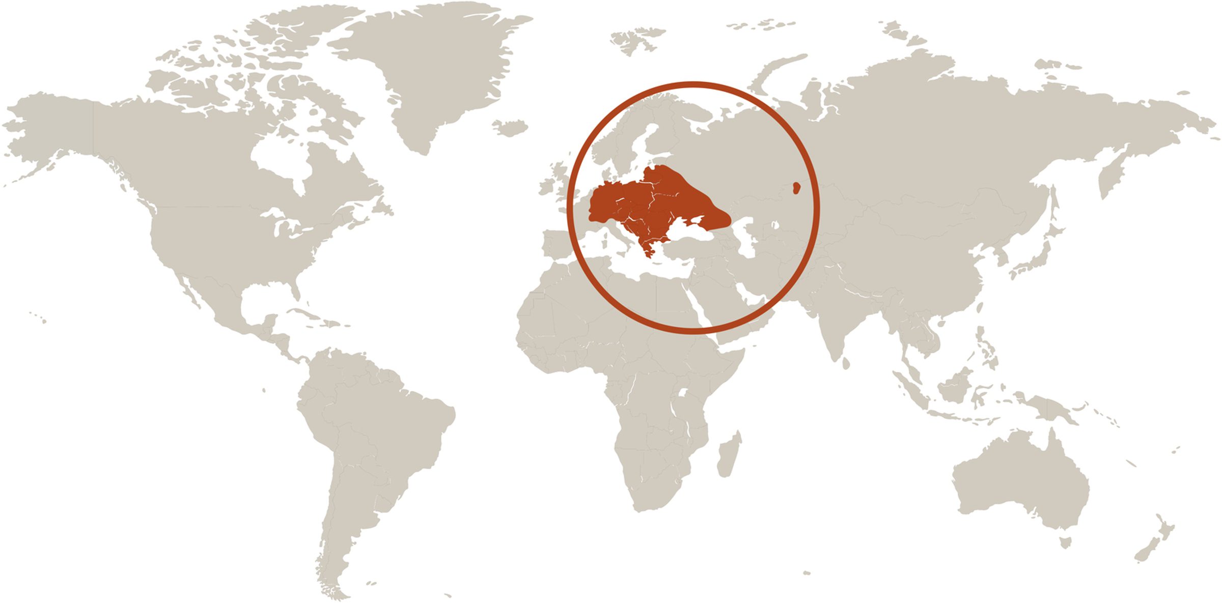 Forest, Forest steppe, scrubland, grassland and alpine habitats.