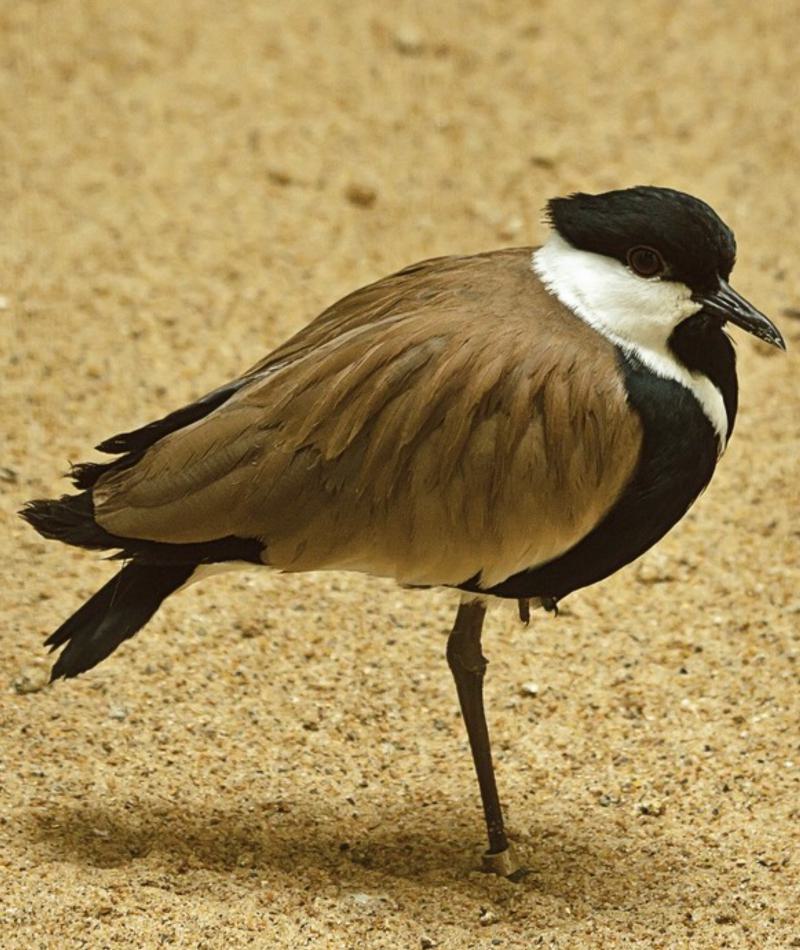 Spur-winged plovers use their hidden claws, located under each wing, to defend young and scare intruders away. Their skinny legs help them easily wade through water. They use their feet to “foot tremble,” which scares prey out from hiding.