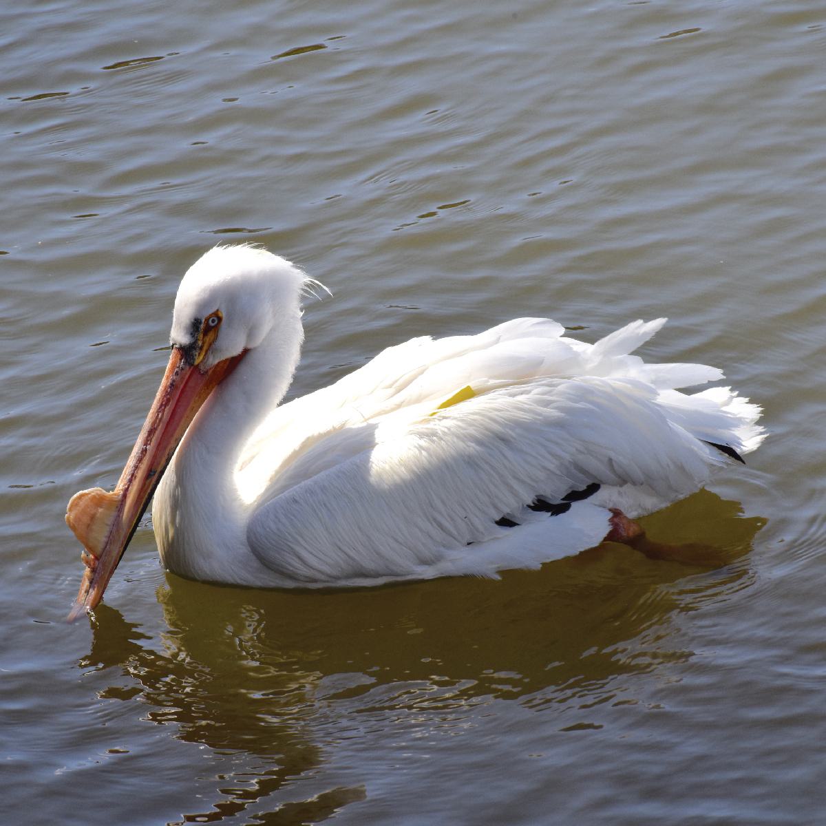 During breeding season, both male and female white pelicans develop a large bump or "horn" on the top of their beak. When breeding season is over, the horn falls off.