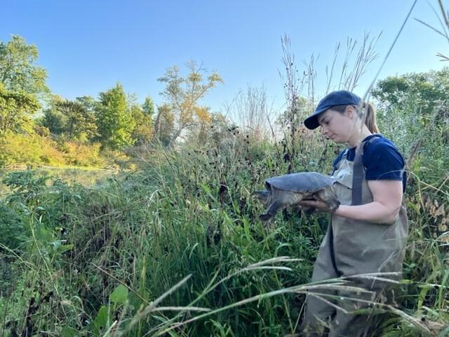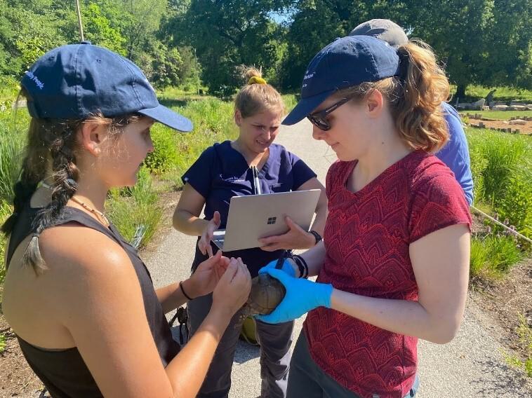 In Forest Park, we work with park ecologists to study how native habitat restoration — from the control of invasive plant species to possible negative impacts associated with waterway modifications — may affect the health and behavior of species that call the park home. We test box turtles and snapping turtles in Forest Park for infectious and non-infectious diseases. These results provide data on the health of the ecosystems on which these turtles are dependent.