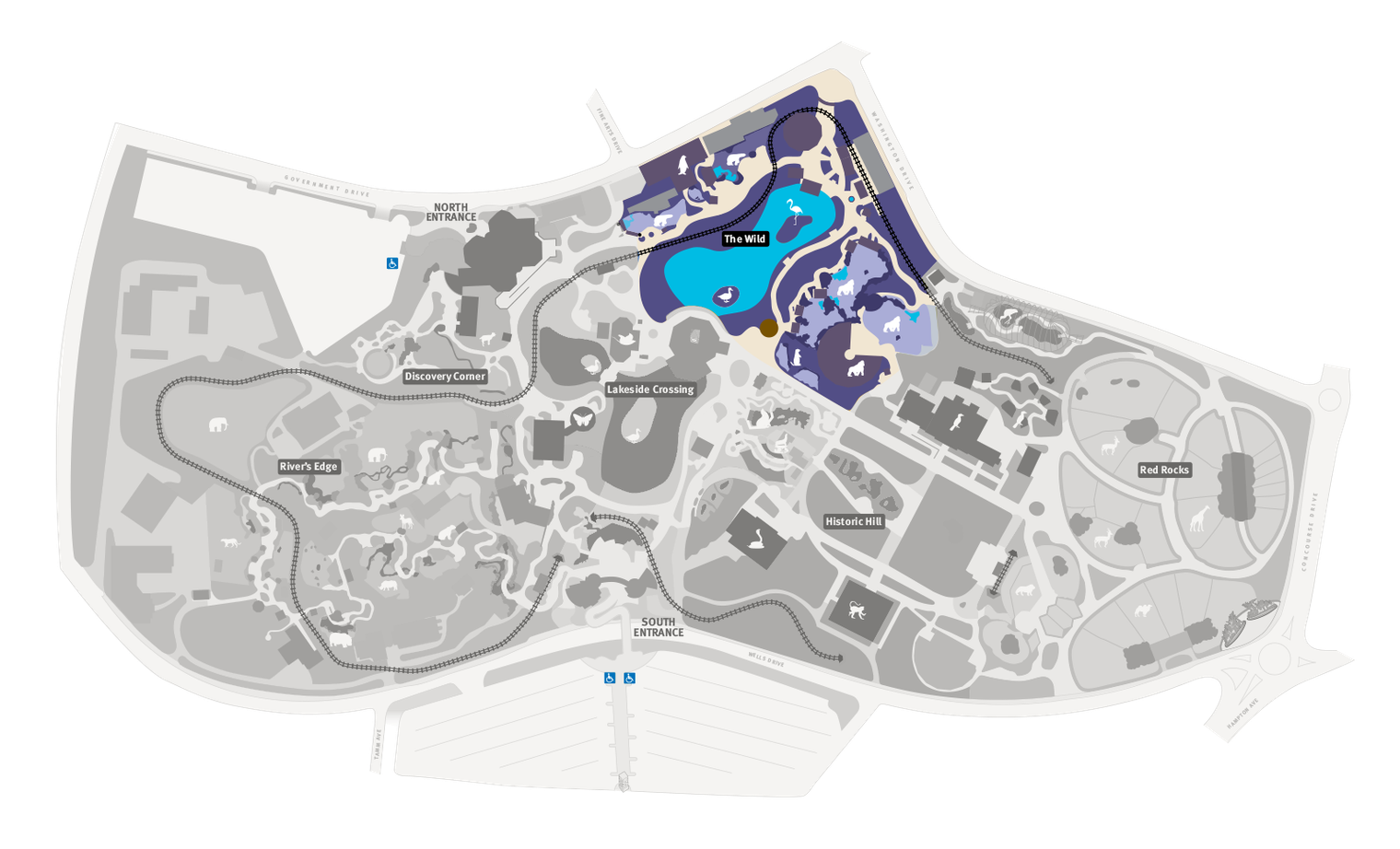 This spacious habitat for grizzly bears features a variety of exciting views and is home to Huckleberry and Finley.