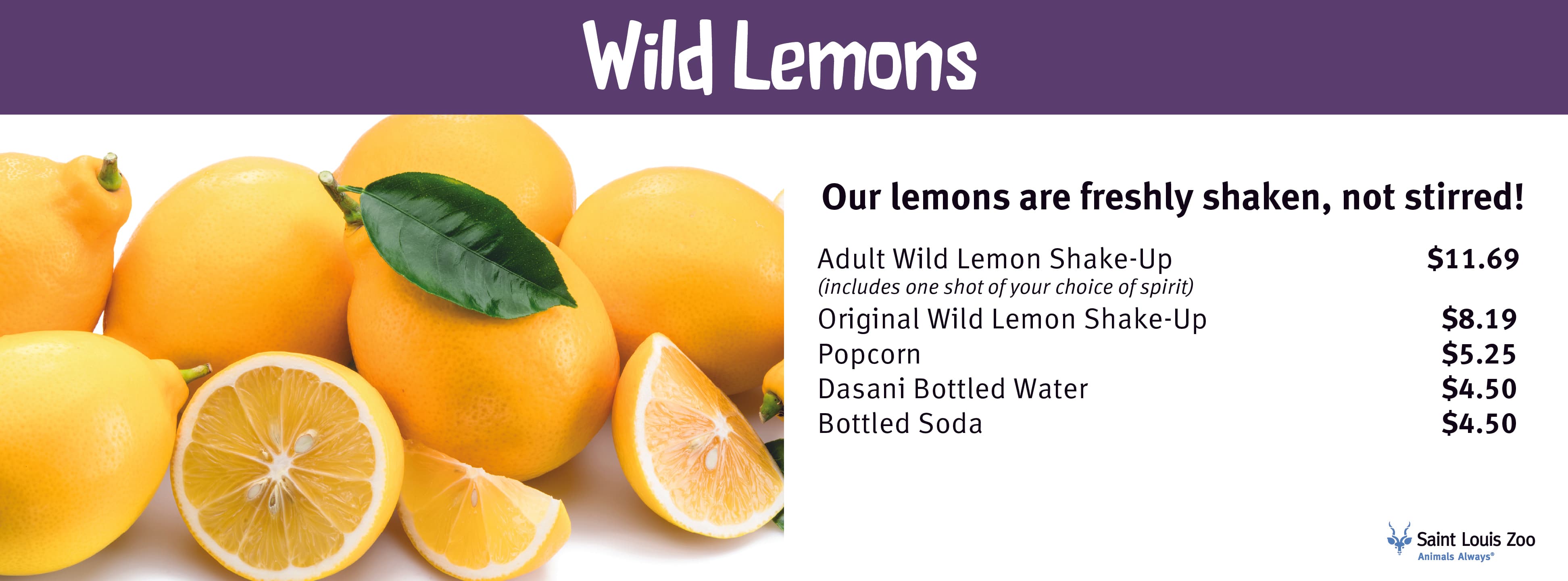 Nothing says summer like a freshly squeezed Lemonade Shake-Up. It's the coolest drink in town. Be sure to stop by Wild Lemons, where our lemons are freshly shaken, not stirred! Located near the entrance of Jungle of the Apes.